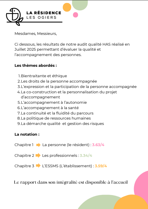Notre EHPAD a récemment accueilli l’audit de la Haute Autorité de Santé (HAS).